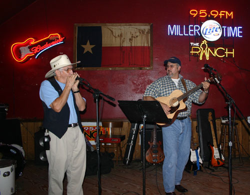 Here's a good shot of Grandpa on stage with me. He does a great country or blues harmonica accompanyment.
